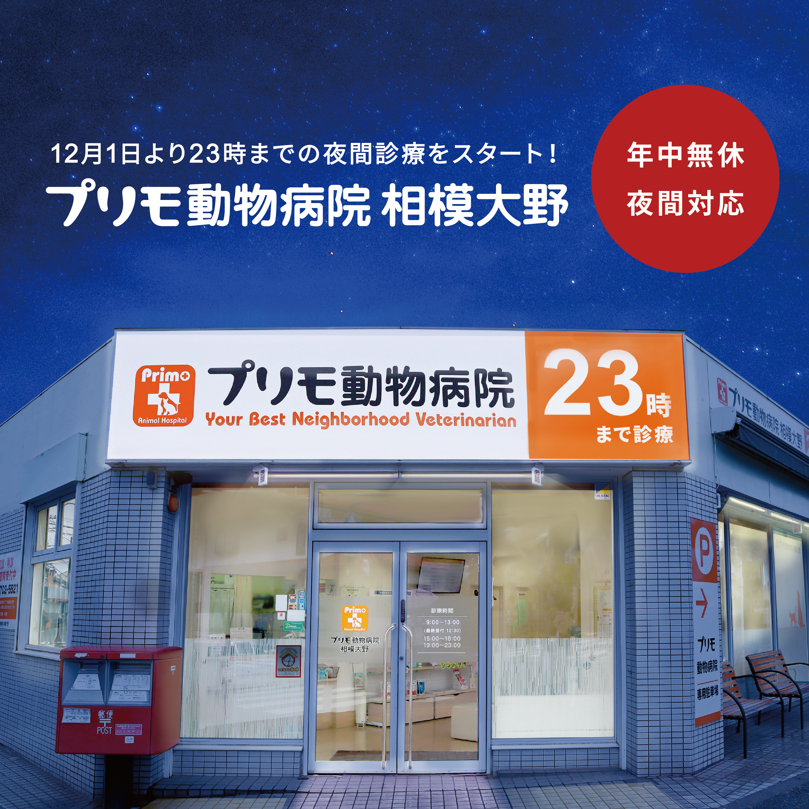 2025年12月1日よりプリモ動物病院 相模大野にて23時までの夜間診療をスタートしました。